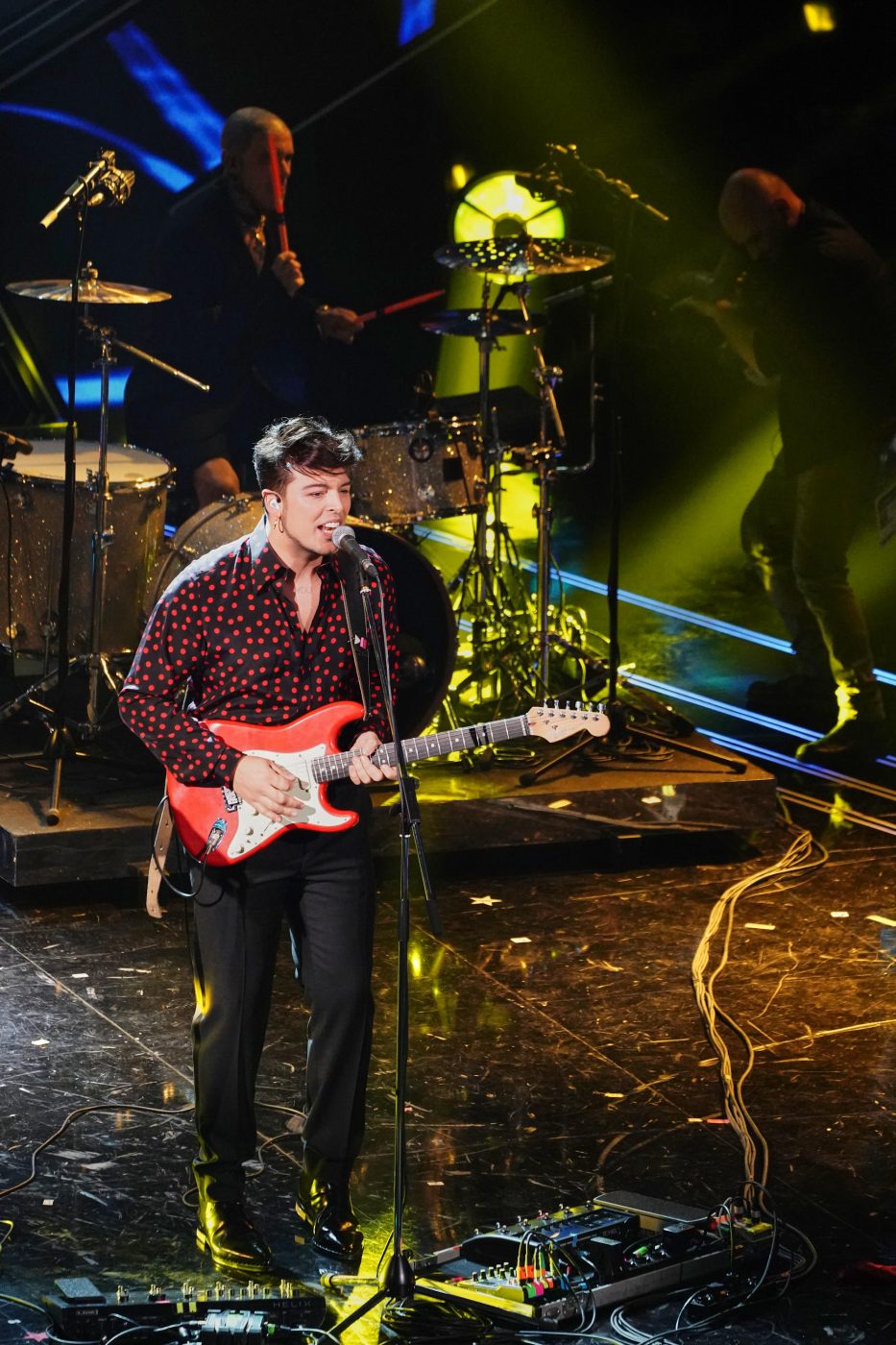 Stash e i The Kolors hanno accompagnato il giovane rapper Random nella terza serata di Sanremo 2021, quella tradizionalmente dedicata alle cover omaggiando Jovanotti. Il concorrente in gara e la band hanno portato all’Ariston una versione nuova di “Sono un ragazzo fortunato” tuttavia più che della performance in sé sui social si parla del look di Stash.