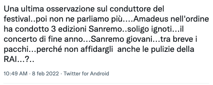 Ora infatti, Amadeus percepirebbe circa 1 milione di euro per ogni conduzione, a cui vanno aggiunte presentazioni extra come L’Anno che Verrà o appunto il Festival di Sanremo.