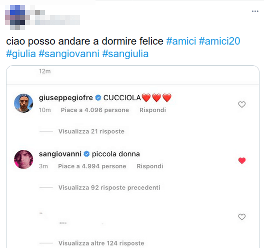 Amici, Giulia Stabile torna su Instagram e nomina Sangiovanni