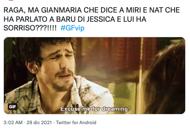 Intanto il web per Jessica fantastica una storia con Barù, con il quale sembra esserci una certa affinità. In un video condiviso su Twitter, si vede Gianmaria confidare ad altri inquilini della casa di aver messo “una buona parola” per lui sia con Vale che con Jessica.