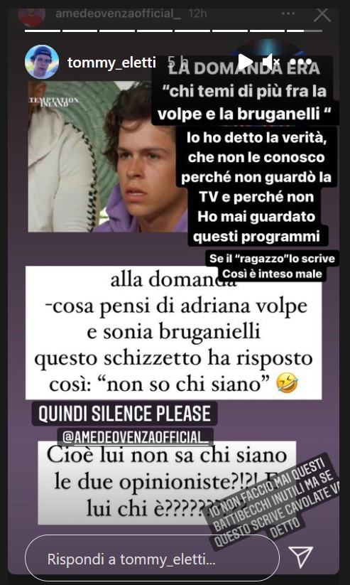 Tommaso Eletti, nelle sue Instagram Stories, si è fatto porre delle domande dai fan, facendo uno scivolone su Sonia Bruganelli e Adriana Volpe, opinioniste del prossimo Grande Fratello Vip.