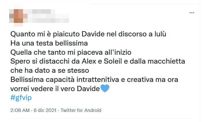 GF Vip: il bellissimo discorso di Davide Silvestri a Lulù Selassié