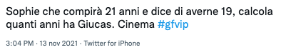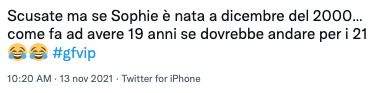 Sophie all’interno della casa continua a dire di avere 19 anni e non è chiaro il suo anno di nascita: 2000 o 2001? Stando ai numeri, Sophie dovrebbe compiere a dicembre 21 anni ma sembra che lei affermi di avere 19 anni: va quindi per i 20?