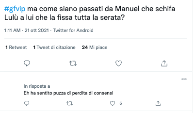 Stranamente proprio ieri sera Manuel sembra essersi riavvicinato a Lulù e in molti sospettano che l’atteggiamento di Bortuzzo sia stato studiato proprio per avere nuove clip.