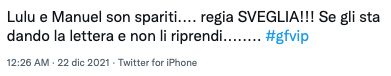 “Gianmaria e Manuel sul divano si scambiano sguardi ridendo mentre Lulù insiste a voler la lettera e Manuel dice che non è il momento. Staranno combinando qualcosa per Lulù questi due?” ha commentato un utente sui social. Manuel infatti voleva fare una sorpresa e dare la lettera a Lulù in un momento carino, ma durante la notte, proprio sul più bello, la regia ha staccato l’inquadratura dalla coppia.
