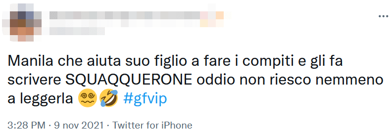 Un momento di trash sensazionale, dunque (anche più d’uno, in verità), nel quale Manila non ha certo fatto bella figura. Nel frattempo, sul web in molti hanno cominciato a prenderla in giro per questo suo scivolone sullo squacquerone… in tanti ci scherzano su ma c’è chi spera che la Nazzaro non aiuti mai suo figlio a fare i compiti di italiano!