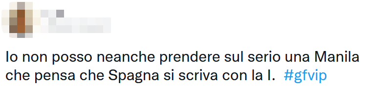 Una gaffe grammaticale, quella di Manila, che si aggiunge ad un’altra già vista ieri, quando era convinta che il paese iberico con Madrid capitale andasse scritto “Spagnia”, con una ‘i’ tra la ‘n’ e la ‘a’.