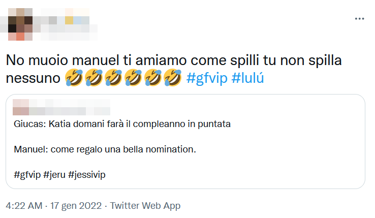LEGGI ANCHE:– GF Vip, Manuel fa questa cosa solo con Giucas e Lulù: una delle scene più belle del GF Vip