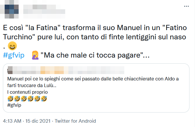 LEGGI ANCHE:– GF Vip, Manuel catturato nel magico mondo di Lulù: cosa è successo stanotte