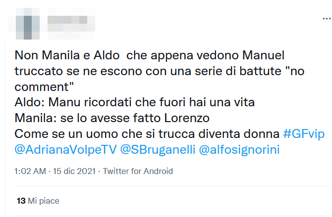 Molti sono infatti rimasti sconcertati vedendo la reazione di Aldo Montano e di Manila Nazzaro di fronte a Manuel truccato da Lulù.