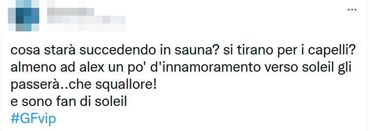 Andiamo con ordine. Mentre erano in sauna, Soleil ha avviato una discussione con Alex Belli, poi sfociata in un mezzo litigio.