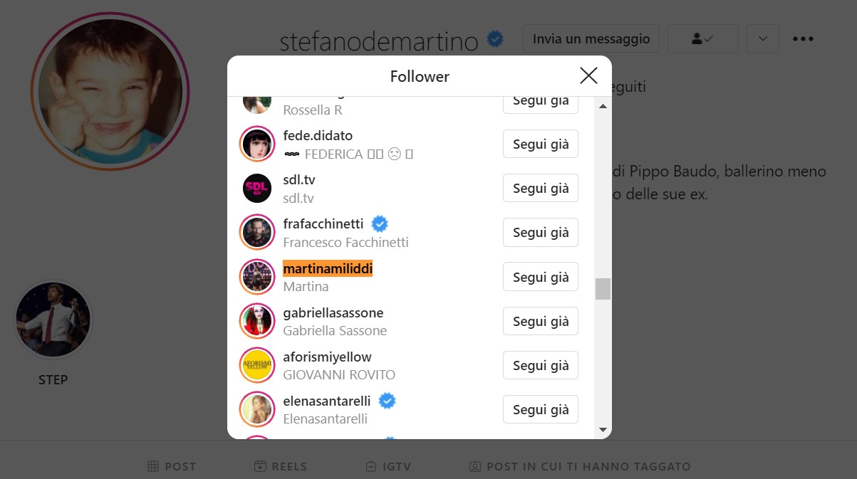I sospetti sono parecchi e il popolo del web ne stanno raccogliendo di nuovi ogni giorni: dal follow della giovane danzatrice al profilo Instagram di Stefano (“Martina ha già iniziato a seguire Stefano De Martino ed ha messo like al suo ultimo post”) fino al dubbio sulla mancata messa in onda della rottura tra la Miliddi e Aka7even.