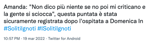 “Amanda regina degli incidenti diplomatici” ha commentato un utente su Twitter riferendosi al suo recente intervento a Domenica In che ha fatto scalpore per una battuta riuscita male che ha tirato in mezzo il popolo ucraino.