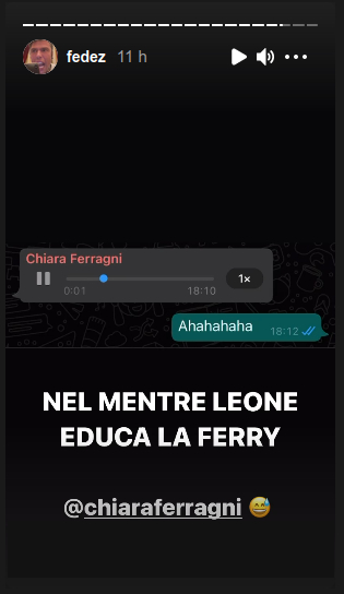 Anche Fedez ha voluto commentare il gesto del figlio, scrivendo “nel mentre Leone educa la Ferry”.
