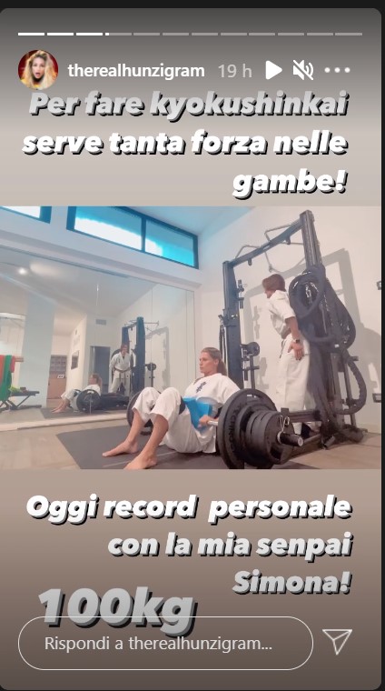 È per questo motivo che nelle sue Instagram Stories si è mostrata mentre sollevava 100 kg di peso con gli addominali, al fine di allenare la forza nelle gambe. Questo sembra essere il suo record personale, stimolato da Simona, la sua senpai personale.