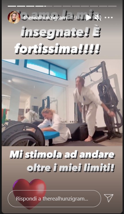 Andiamo con ordine. Michelle Hunziker è da qualche tempo dedita al Karate Kyokushinkai, per il quale si allena duramente con addominali e altri estenuanti esercizi.