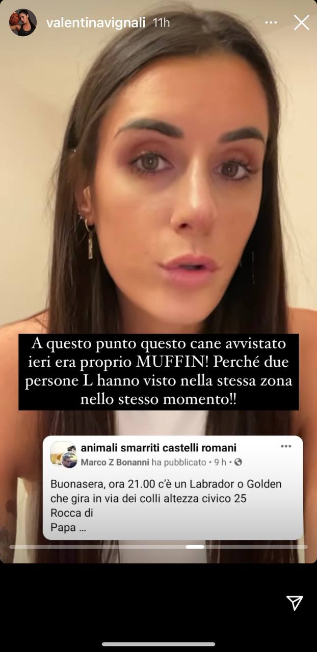 Nel frattempo Valentina è impegnata per lavoro a Milano, durante la fashion week. Si attendono aggiornamenti e i fan sperano che Muffin venga presto ritrovato.
